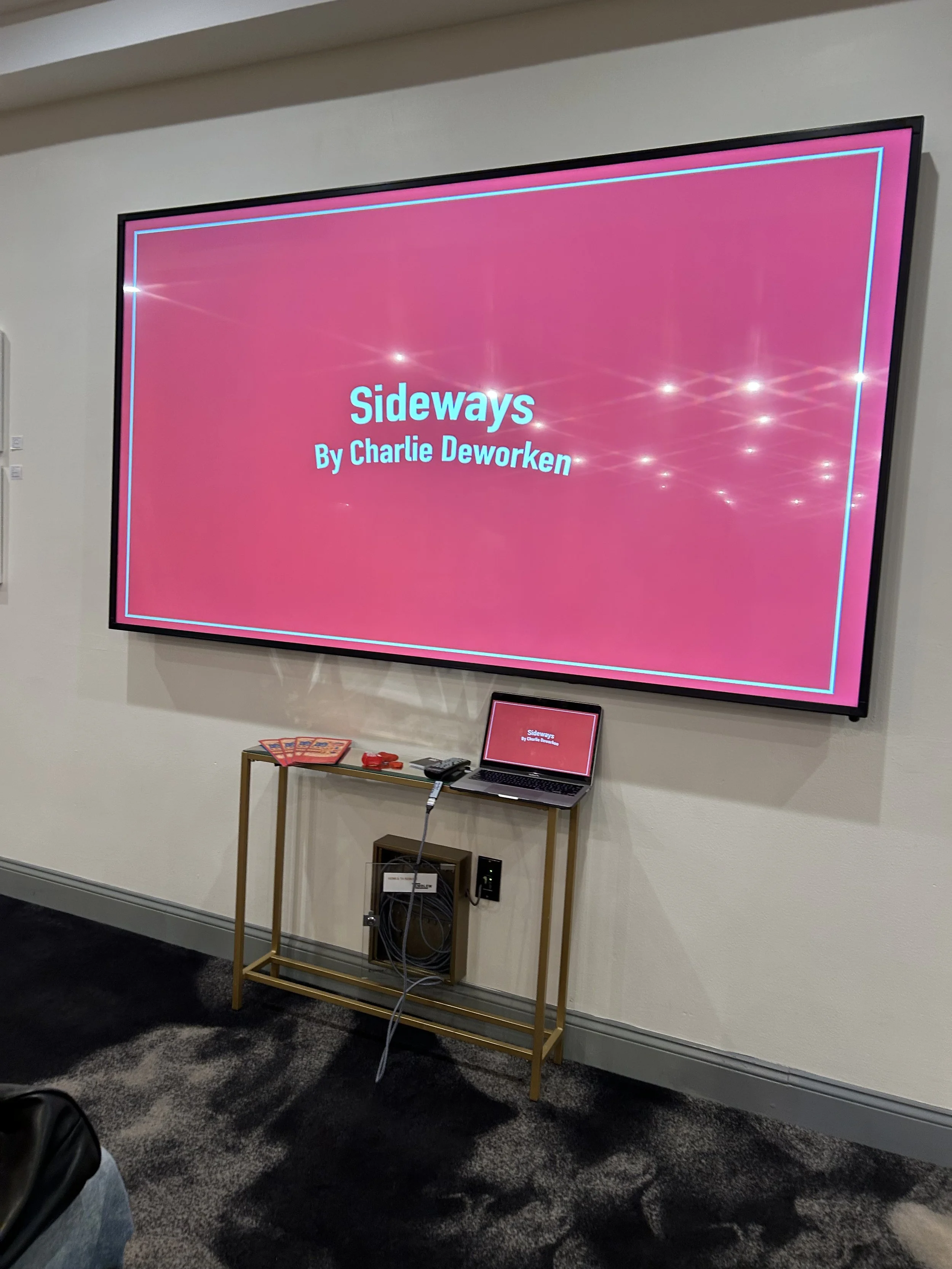 Sideways is a 48 Hour 2D animated film created for the CCA 24 Frames Animation Clubs Fall 2025 48 Hour Film Challenge sponsored by San Francisco's CAPL (Center for Art and Public Life). The year's theme was LOVE.